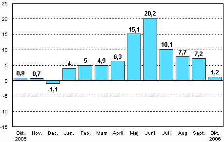 I oktober 2006 var den säsongrensade industriproduktionen enligt Statistikcentralen 1,2 procent större än i oktober 2005. Under januari-oktober ökade den hela säsongrensade industriproduktionen med 8 procent från året innan.