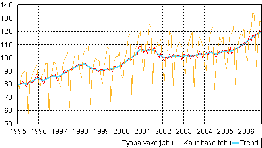 teollisuustuotannon volyymi-indeksi 1995 - 2006 lokakuu,