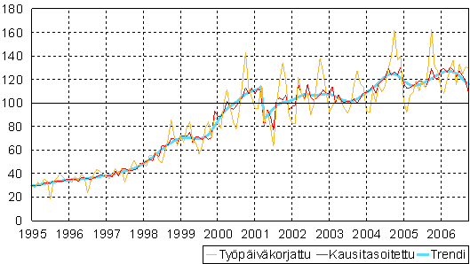 teollisuustuotannon volyymi-indeksi 1995 - 2006 marraskuu,