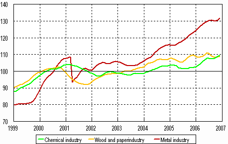 After a slight downturn the trend in industrial output began to rise again. Industrial output now grows faster in Finland than in the EU countries on the average.