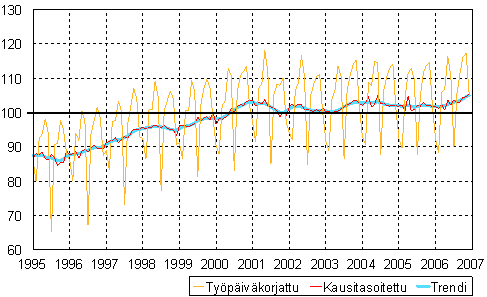 teollisuustuotannon volyymi-indeksi 1995 - 2006 joulukuu,