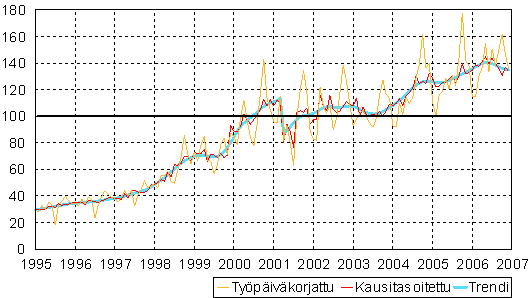 teollisuustuotannon volyymi-indeksi 1995 - 2006 joulukuu,
