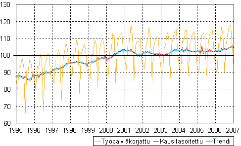 teollisuustuotannon volyymi-indeksi 1995 - 2007 tammikuu,