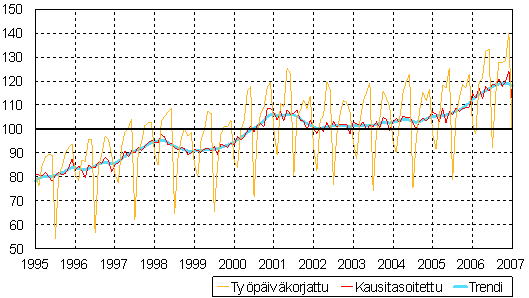 teollisuustuotannon volyymi-indeksi 1995 - 2007 tammikuu,