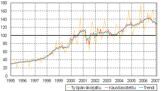 teollisuustuotannon volyymi-indeksi 1995 - 2007 helmikuu,