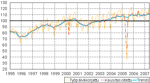 teollisuustuotannon volyymi-indeksi 1995 - 2007 kesäkuu,