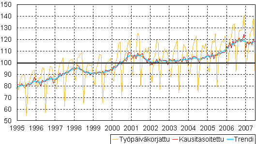 teollisuustuotannon volyymi-indeksi 1995 - 2007 heinäkuu,