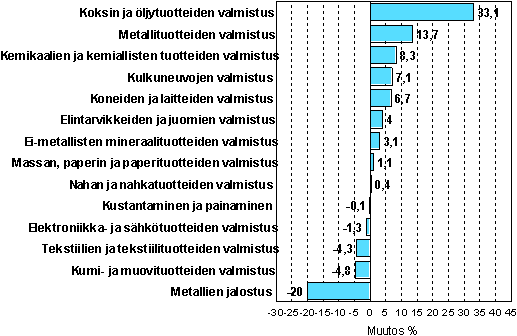 Teollisuustuotannon kausitasoitettu muutosprosentti