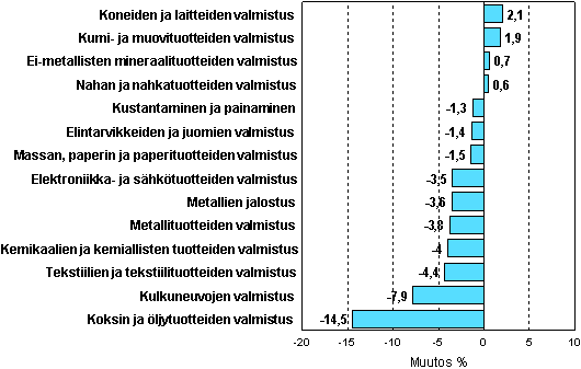 Teollisuustuotannon kausitasoitettu muutosprosentti syyskuu 2007 / lokakuu 2007