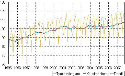 teollisuustuotannon volyymi-indeksi 1995 - 2007 lokakuu,