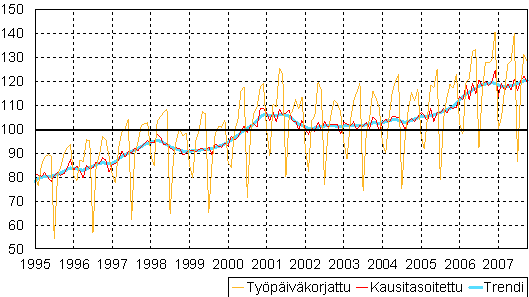 teollisuustuotannon volyymi-indeksi 1995 - 2007 lokakuu,