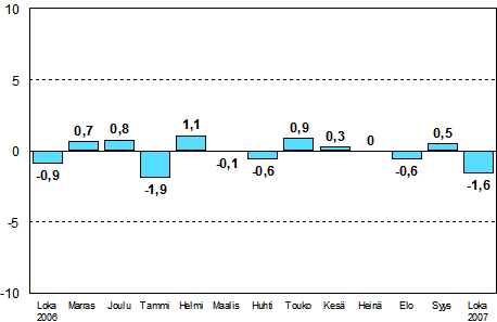 - Teollisuustuotannon kausitasoitettu muutosprosentti lokakuu 2006 / lokakuu 2007 (30.11.2007)