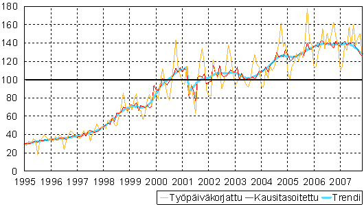 teollisuustuotannon volyymi-indeksi 1995 - 2007 marraskuu,