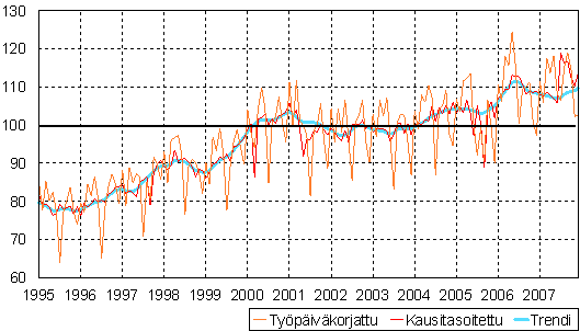 teollisuustuotannon volyymi-indeksi 1995 - 2007 joulukuu,