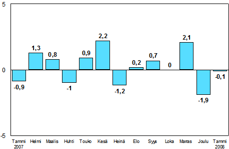 - Teollisuustuotannon kausitasoitettu muutosprosentti joulukuu 2007 / tammikuu 2008 (29.2.2008)