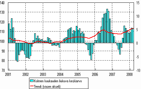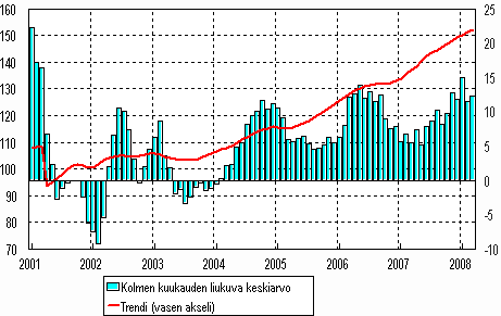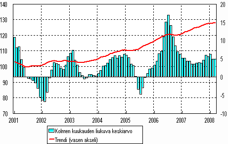 Lähde: Teollisuustuotannon volyymi-indeksi 2008, maaliskuu. Tilastokeskus