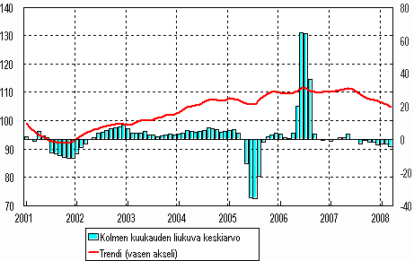 Katsauksessa olevat kolmen kuukauden liukuvat keskiarvoluvut perustuvat kausitasoitettuihin indeksipistelukuihin.