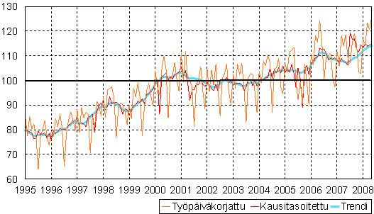 teollisuustuotannon volyymi-indeksi 1995 - 2008 toukokuu,