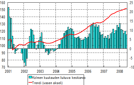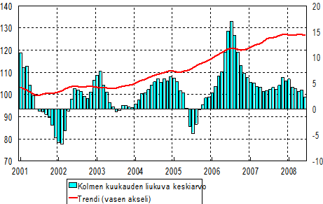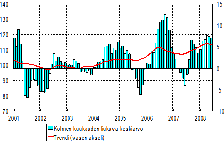 Lähde: Teollisuustuotannon volyymi-indeksi 2008, kesäkuu. Tilastokeskus