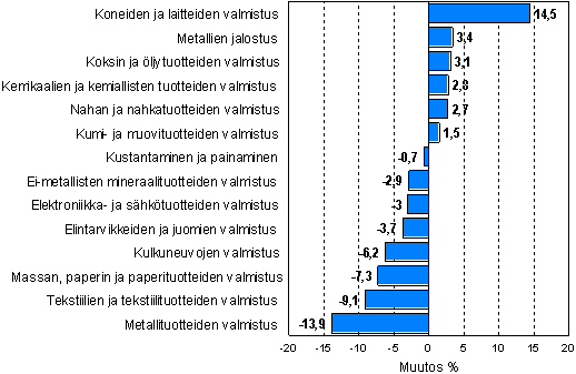 Teollisuustuotannon työpäiväkorjattu muutosprosentti kesäkuu 2007 / kesäkuu 2008