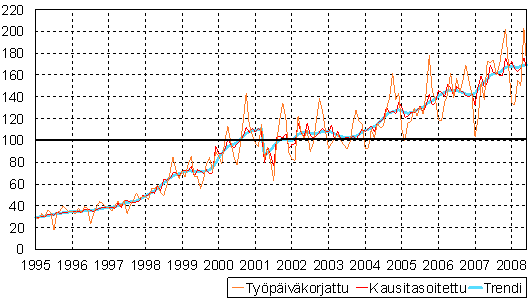 teollisuustuotannon volyymi-indeksi 1995 - 2008 kesäkuu,
