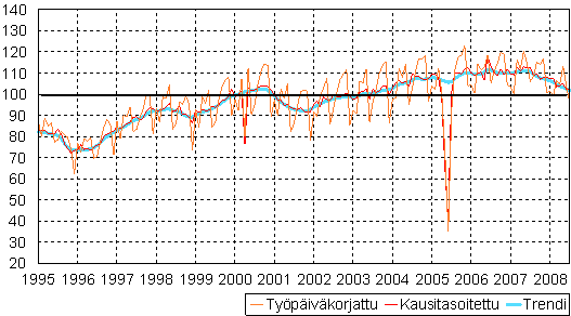 teollisuustuotannon volyymi-indeksi 1995 - 2008 heinäkuu,