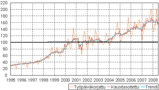 teollisuustuotannon volyymi-indeksi 1995 - 2008 heinäkuu,