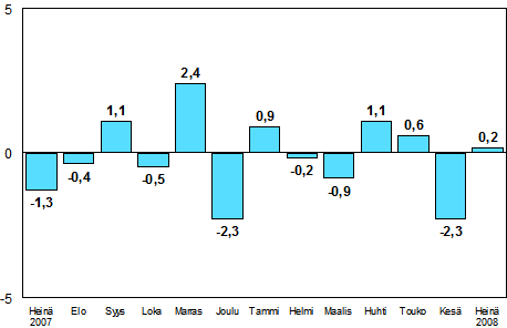 - Teollisuustuotannon kausitasoitettu muutosprosentti kesäkuu 2008 / heinäkuu 2008 (29.8.2008)