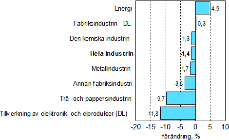 Industriproduktionen minskade i juli med 1,4 procent från året innan