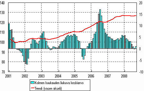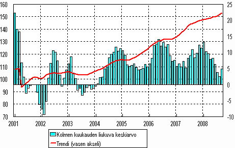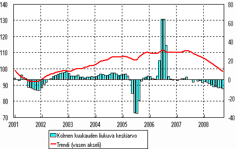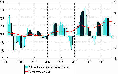 Lähde: Teollisuustuotannon volyymi-indeksi 2008, syyskuu. Tilastokeskus