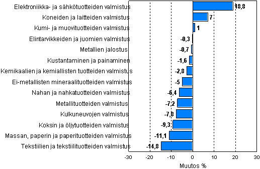 Teollisuustuotannon työpäiväkorjattu muutosprosentti syyskuu 2007 / syyskuu 2008