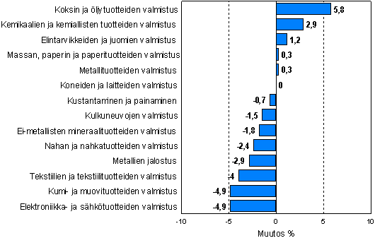 Teollisuustuotannon kausitasoitettu muutosprosentti