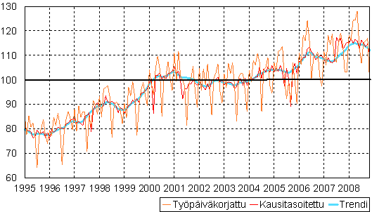 teollisuustuotannon volyymi-indeksi 1995 - 2008 marraskuu,