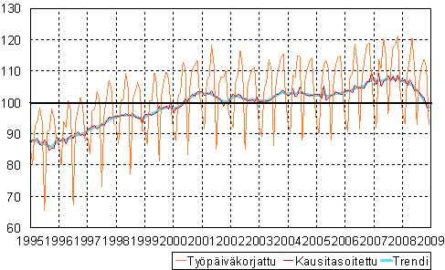 teollisuustuotannon volyymi-indeksi 1995 - 2008 joulukuu,