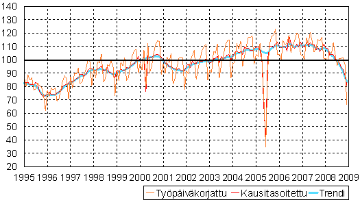 teollisuustuotannon volyymi-indeksi 1995 - 2008 joulukuu,