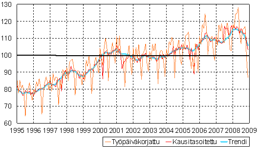 teollisuustuotannon volyymi-indeksi 1995 - 2008 joulukuu,