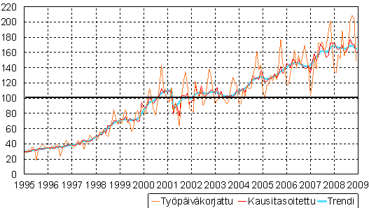 teollisuustuotannon volyymi-indeksi 1995 - 2008 joulukuu,