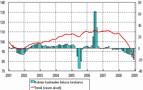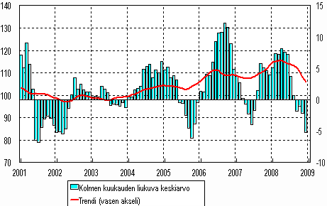 Lähde: Teollisuustuotannon volyymi-indeksi 2008, joulukuu. Tilastokeskus