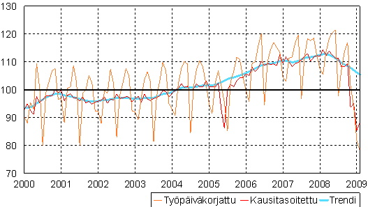teollisuustuotannon volyymi-indeksi 2000 - 2009 helmikuu,
