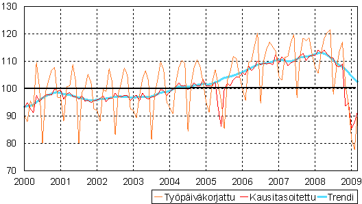 teollisuustuotannon volyymi-indeksi 2000 - 2009 maaliskuu,