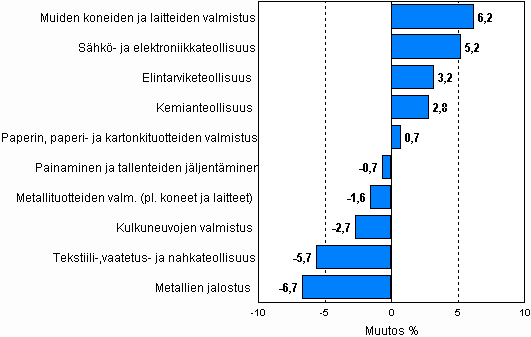 Teollisuustuotannon kausitasoitettu muutosprosentti lokakuu 2009 / marraskuu 2009, TOL 2008