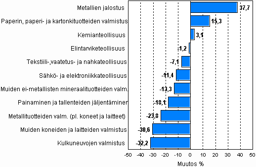 Teollisuustuotannon työpäiväkorjattu muutosprosentti joulukuu 2008 / joulukuu 2009, TOL 2008