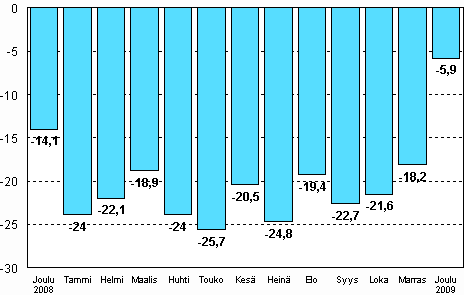 - Teollisuustuotannon työpäiväkorjattu muutosprosentti joulukuu 2008 / joulukuu 2009, TOL 2008 (10.2.2010)