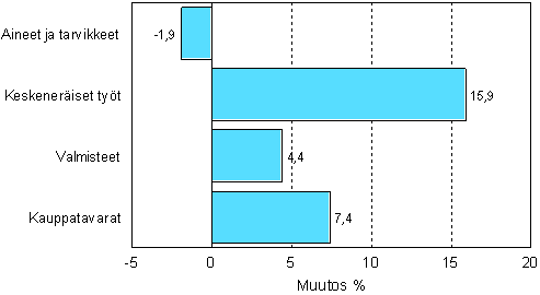Teollisuuden varastojen muutos, varastotyypeittäin, 2005/II - 2005/III, %