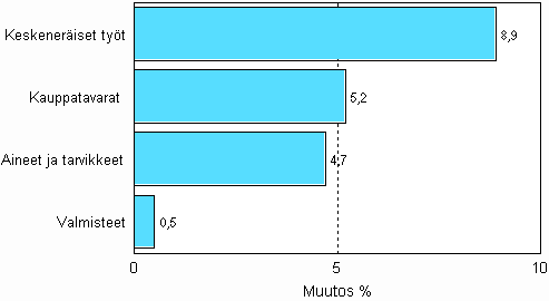 Teollisuuden varastojen muutos, varastotyypeittäin, 2006/II - 2006/III, %