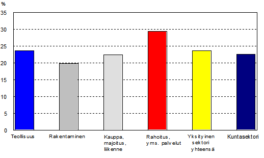 Tehdyn työtunnin kustannus oli yksityisellä sektorilla vuonna 2005 keskimäärin 23,6 prosenttia korkeampi kuin vuonna 2000. Kustannukset kohosivat eniten rahoituksessa ja liike-elämän palveluissa, 29,4 prosenttia, ja vähiten rakentamisessa, 19,9 prosenttia. Kuntasektorilla työtunnin hinta kohosi samana ajankohtana 23,3 prosenttia.