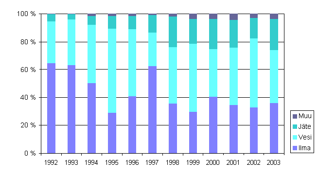 Kuvio 2. Ympäristönsuojeluinvestointien kohdentuminen 1992-2003