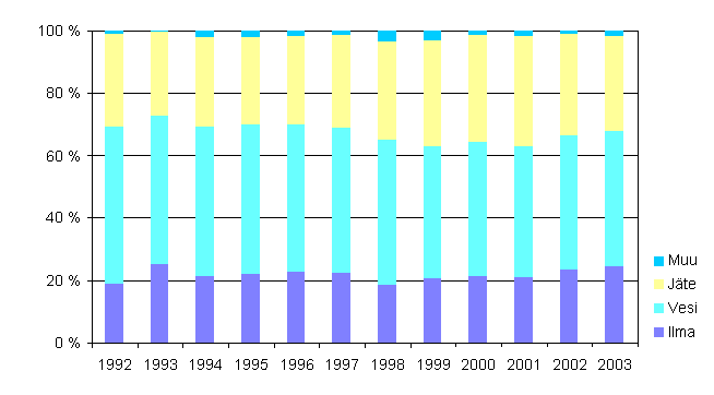 Kuvio 5. Ympäristönsuojelun käyttö- ja kunnossapitomenojen kohdentuminen 1992-2003