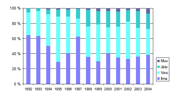 - Kuvio 2. Ympäristönsuojeluinvestointien kohdentuminen 1992-2004 (13.9.2006)
