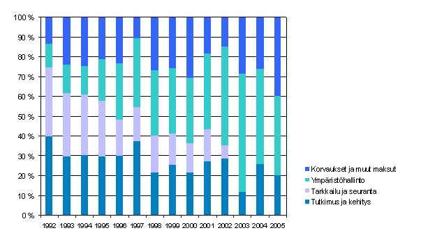 Kuvio 6. Ympäristönsuojelun muut toimintamenot 1992-2005